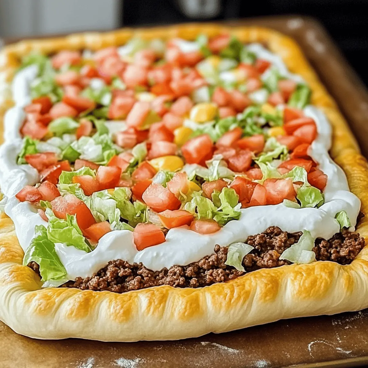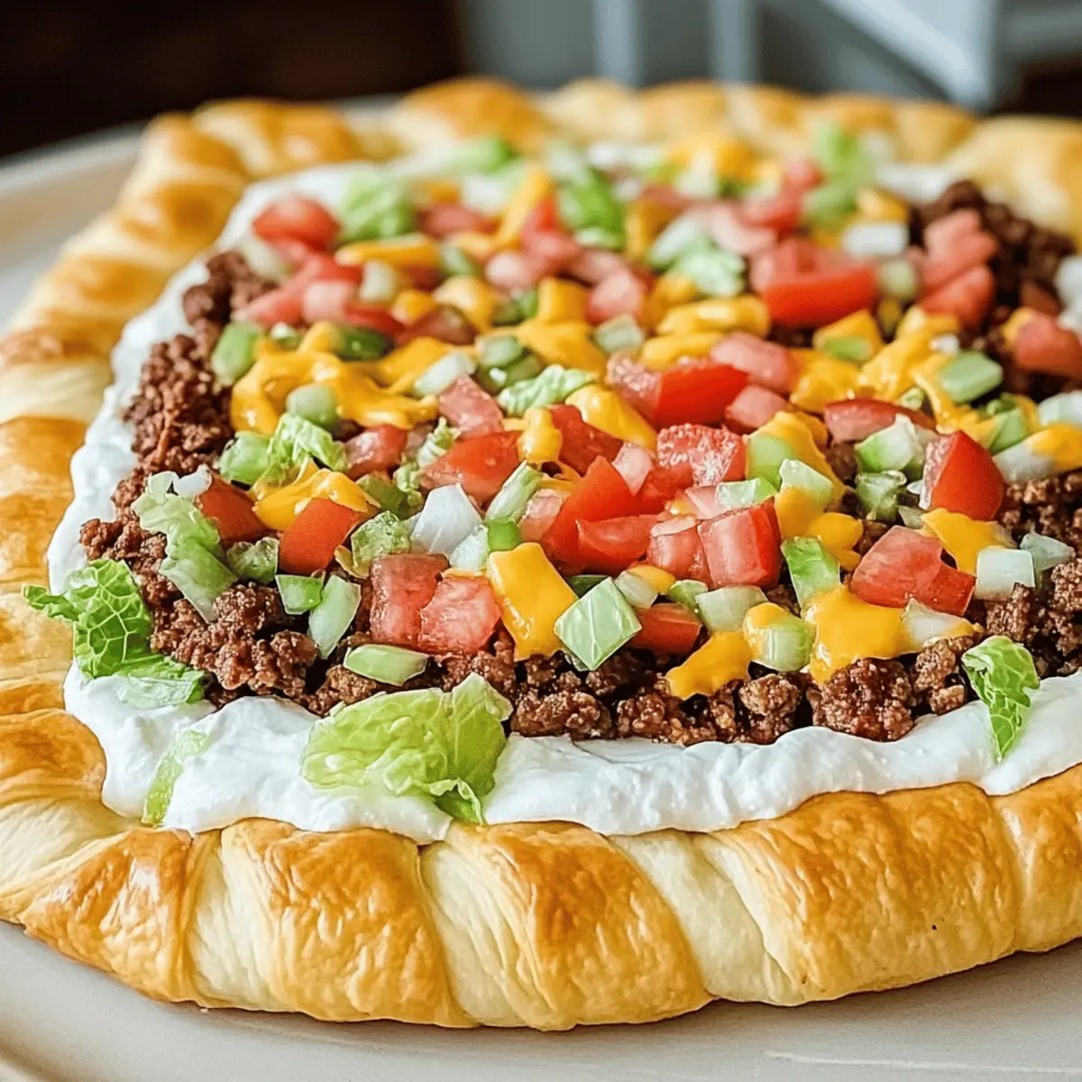 As I pulled the golden crescent dough from the oven, a delightful aroma wafted through my kitchen, instantly sparking nostalgia for family gatherings filled with laughter and scrumptious food. This Taco Pizza Appetizer beautifully marries the zesty, savory essence of tacos with the comfort of a fresh pizza. It's an effortless option that's customizable, making it perfect for accommodating your guests’ taste preferences, whether you’re hosting a lively game day or enjoying a cozy night in. The crispy crust and creamy base give it a satisfying texture that will have everyone reaching for seconds. With this recipe, you’ll serve up a crowd-pleaser that’s not only easy to prepare but also gluten-free as an option! Ready to discover how to whip up this flavorful dish that’s sure to impress? Let’s dive in!