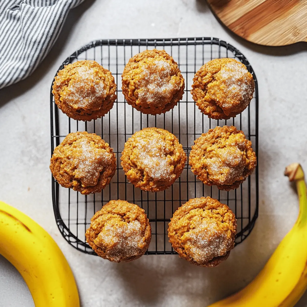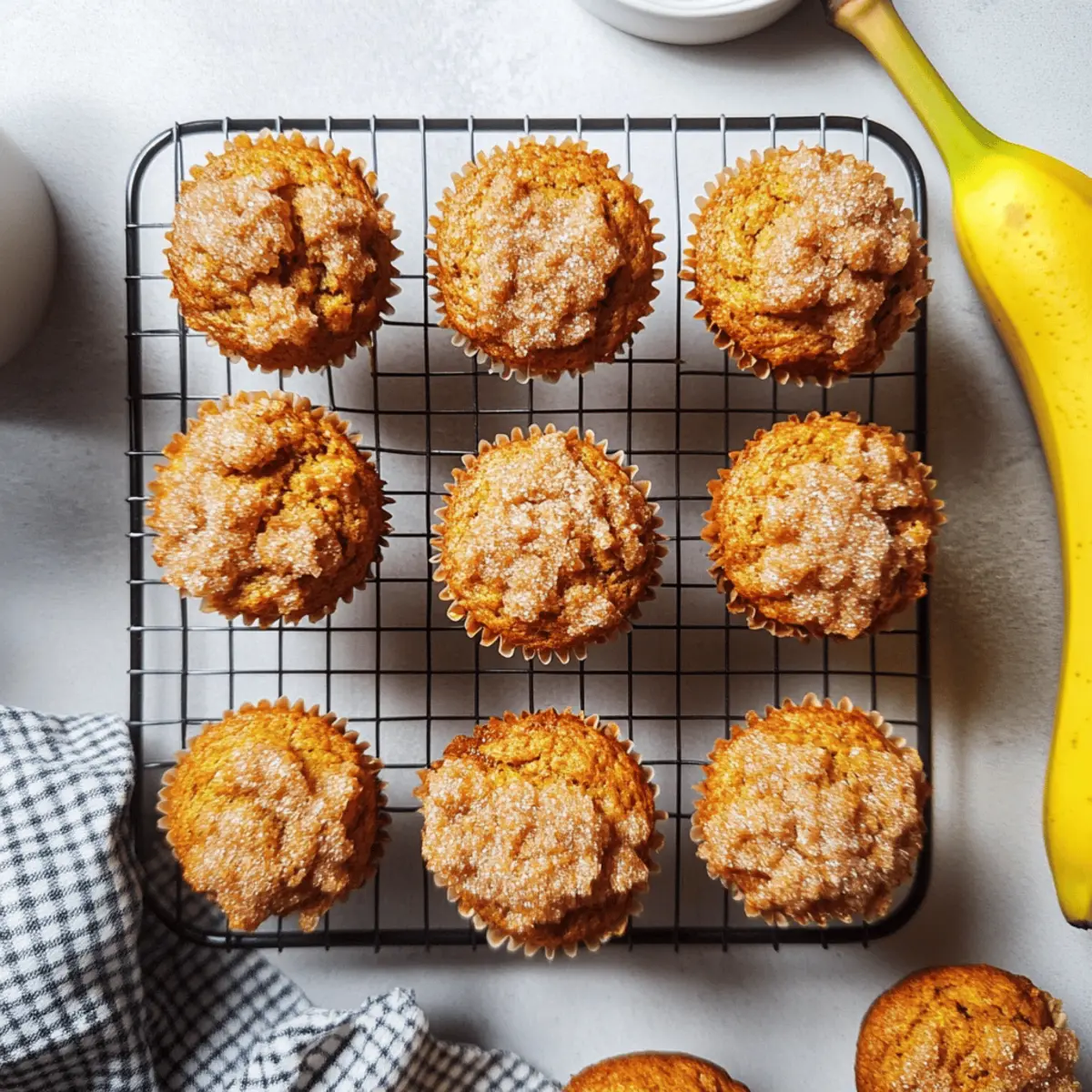 Absolutely! To make your Pumpkin Banana Muffins vegan, use flax eggs instead of regular eggs. To create a flax egg, simply mix 1 tablespoon of ground flaxseeds with 2.5 tablespoons of water; let it sit for about 5 minutes until it becomes gel-like. This substitute binds your ingredients while keeping your muffins delightful and moist.