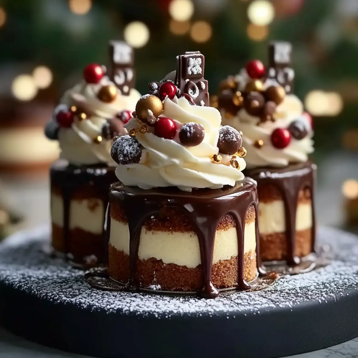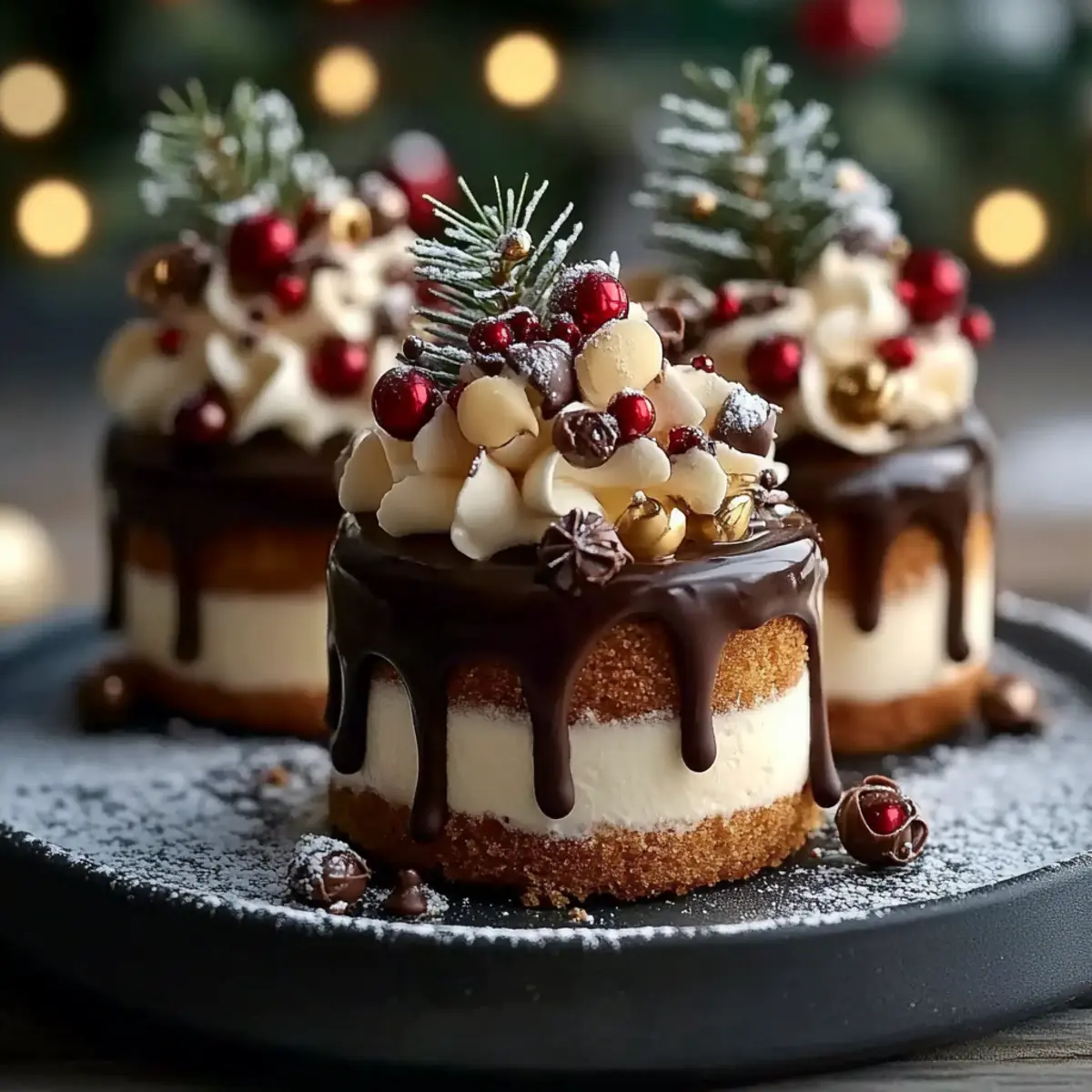 Mini Christmas Drip Cakes with Chocolate Ganache Delight