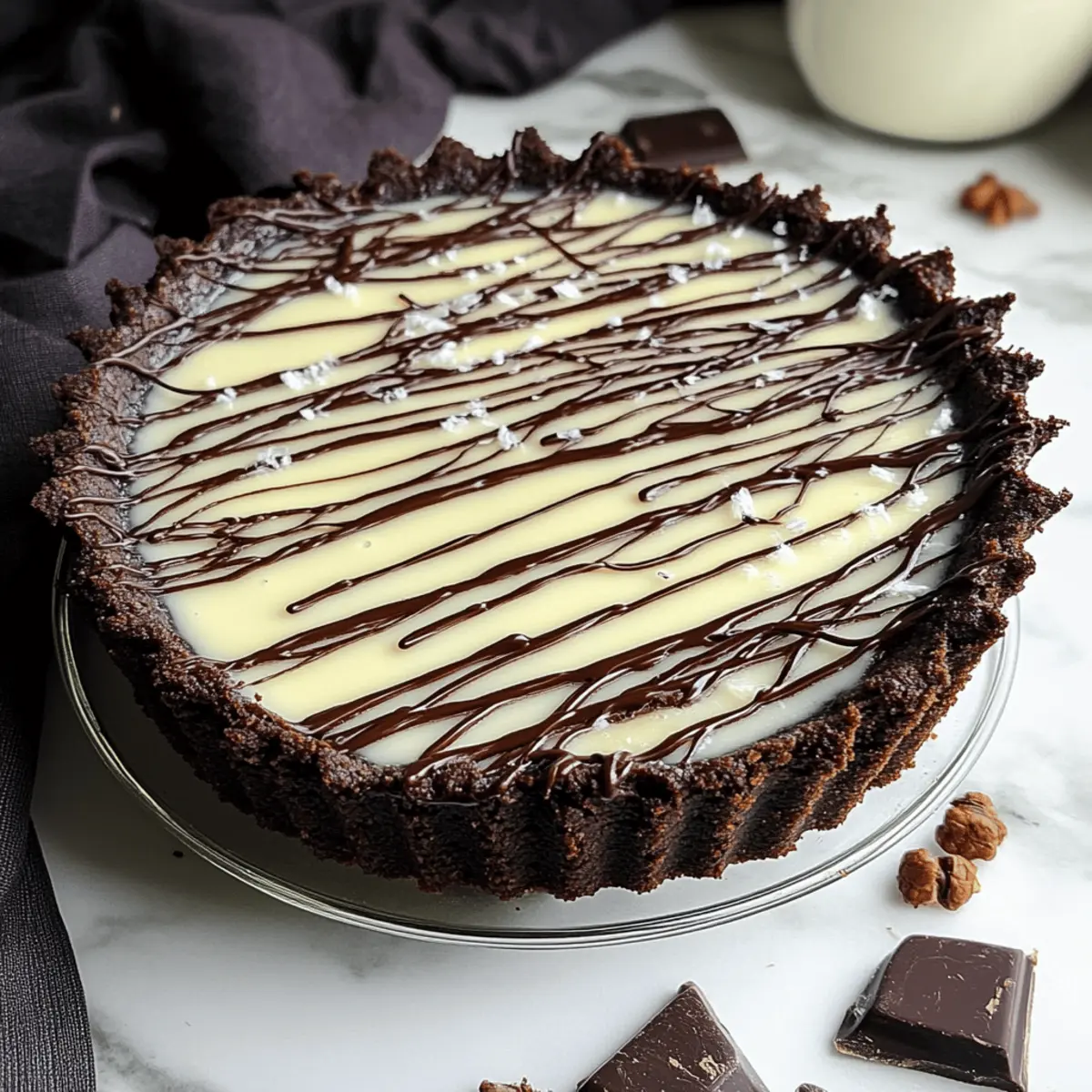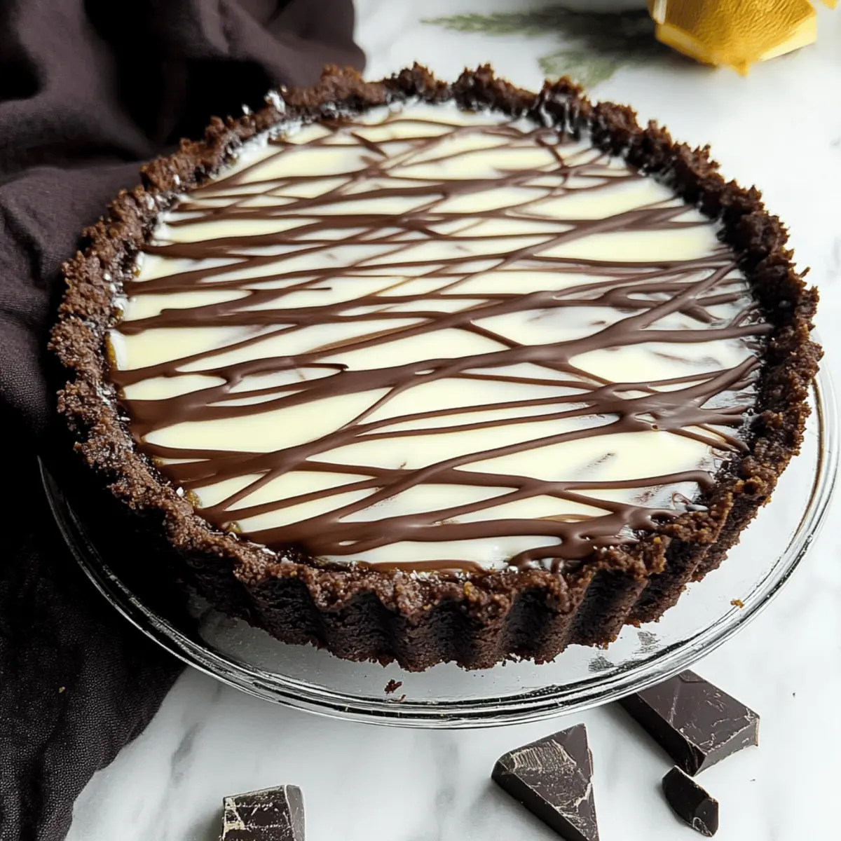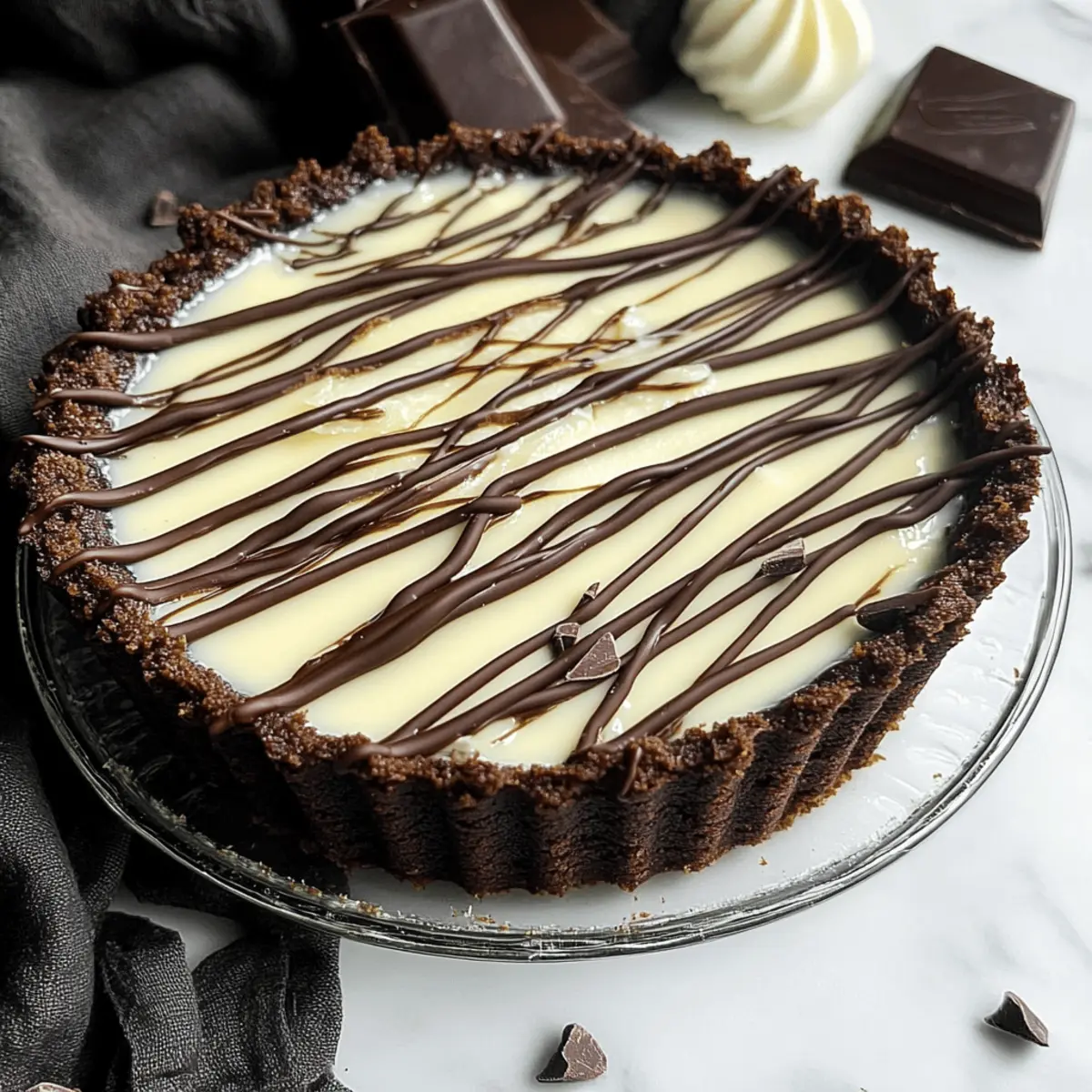 As I stood in my kitchen, the rich scent of melting chocolate transformed the air, igniting my excitement to make a classic Chocolate Custard Tart. This isn’t just any dessert; it’s a spectacular creation featuring a velvety chocolate filling nestled within a tender chocolate shortbread crust—a combination that's sure to delight any chocolate lover. Plus, this decadent triple chocolate custard tart comes together swiftly, making it a fantastic choice for special occasions or a cozy weeknight treat. With its shiny white chocolate drizzle, this dessert not only captivates the eyes but also offers a melt-in-your-mouth experience that will leave your guests asking for seconds. Ready to dive into the world of chocolate bliss? Let’s whip up this irresistible tart together!