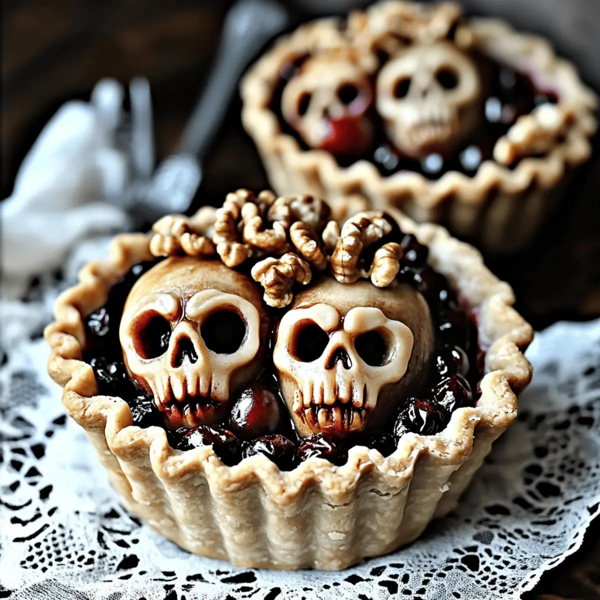 Absolutely! Simply substitute the walnuts with sunflower seeds or omit them entirely. You can also explore using seeds or additional dried fruits, like raisins or dried apricots, for added texture and sweetness, ensuring everyone can enjoy this delightful Halloween Shrunken Heads Pie!