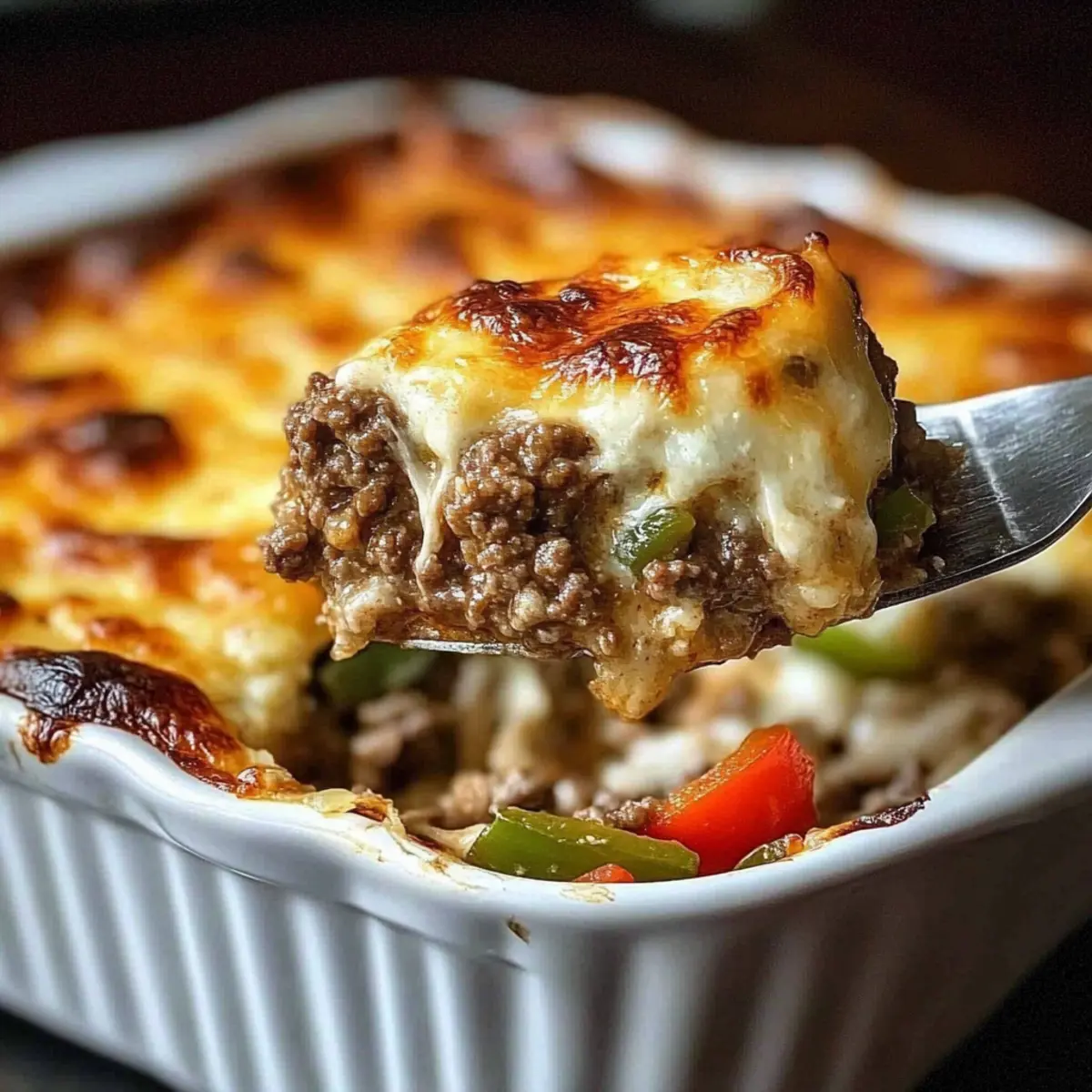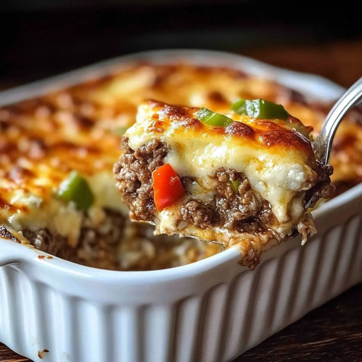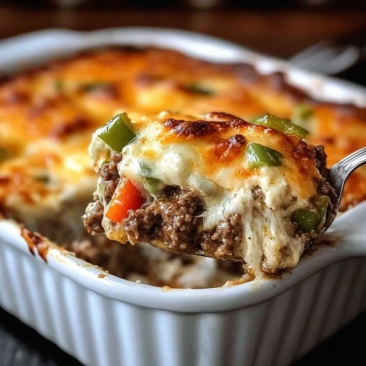 The aroma of sizzling beef and melting cheese wafts through my kitchen, instantly transporting me to a bustling Philadelphia street corner. Today, I’m sharing a delightful twist on a classic favorite—the Low Carb Philly Cheesesteak Casserole. This hearty dish is not just a comfort food but also a high-protein, low-carb solution for busy weeknights when you crave something satisfying without the guilt. Picture seasoned ground beef mingling with colorful sautéed peppers and onions, all enveloped in a creamy cheese blend that combines rich flavors and textures to impress the entire family. Whether you’re winding down after a long day or planning a cozy dinner with friends, this casserole is here to elevate your meal experience. What’s your favorite cheesesteak memory? Let’s create a new one together!