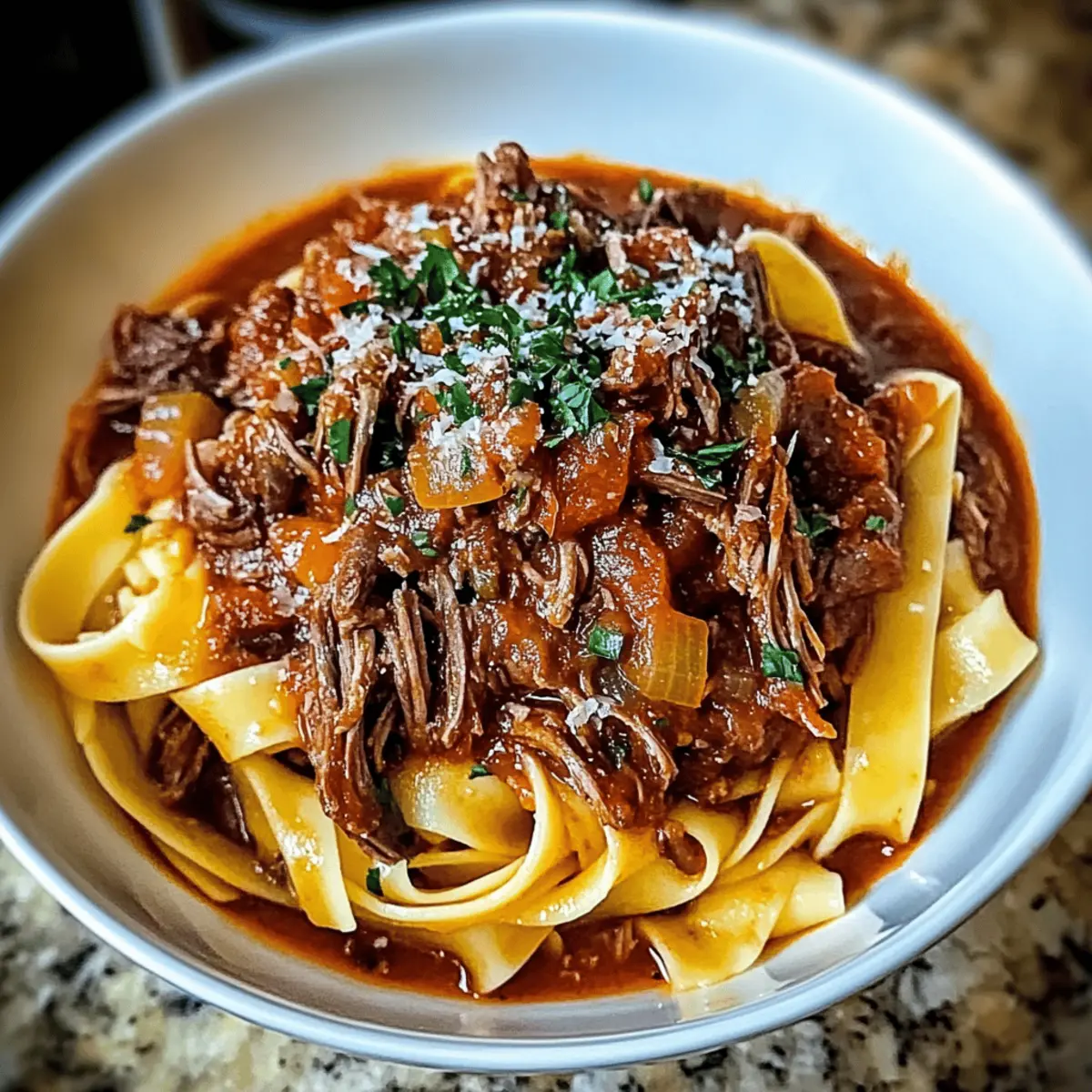 Once the ribs are perfectly tender, remove the pot from heat and discard the herb bundle and bay leaves. Using tongs or a fork, shred the beef directly in the pot, mixing it back into the sauce. Adjust the flavors with a splash of sherry or red wine vinegar, then serve your luscious Short Rib Ragu over cooked tagliatelle or pappardelle pasta, garnished with chopped parsley and grated Parmigiano Reggiano for a delightful finish.