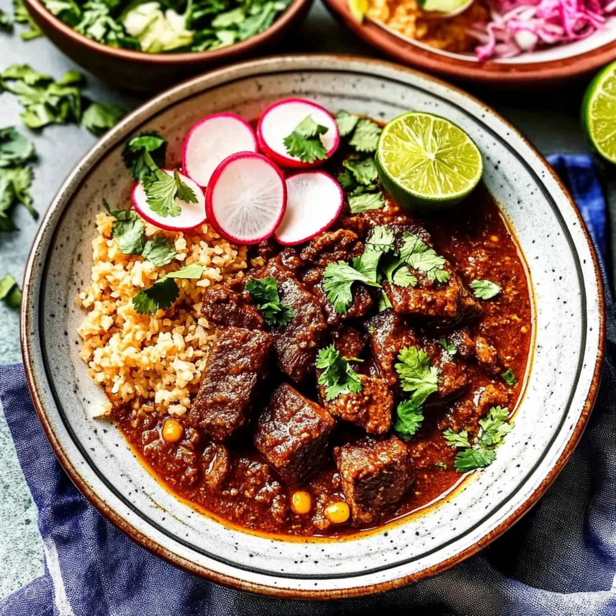 Beef Chile Colorado is a fantastic choice for meal prep, making weeknight dinners a breeze! You can prepare the sauce and brown the beef up to 24 hours in advance. Simply follow the initial steps to toast the chilies and blend the sauce, then cook the beef until browned, and store both components in airtight containers in the refrigerator. To maintain flavor and texture, be sure to cool them completely before refrigerating. When you're ready to serve, combine the beef and sauce in a pot, add bay leaves, and simmer for about 30 minutes until heated through. This way, you’ll enjoy a comforting, delicious stew with minimal effort on busy nights!
