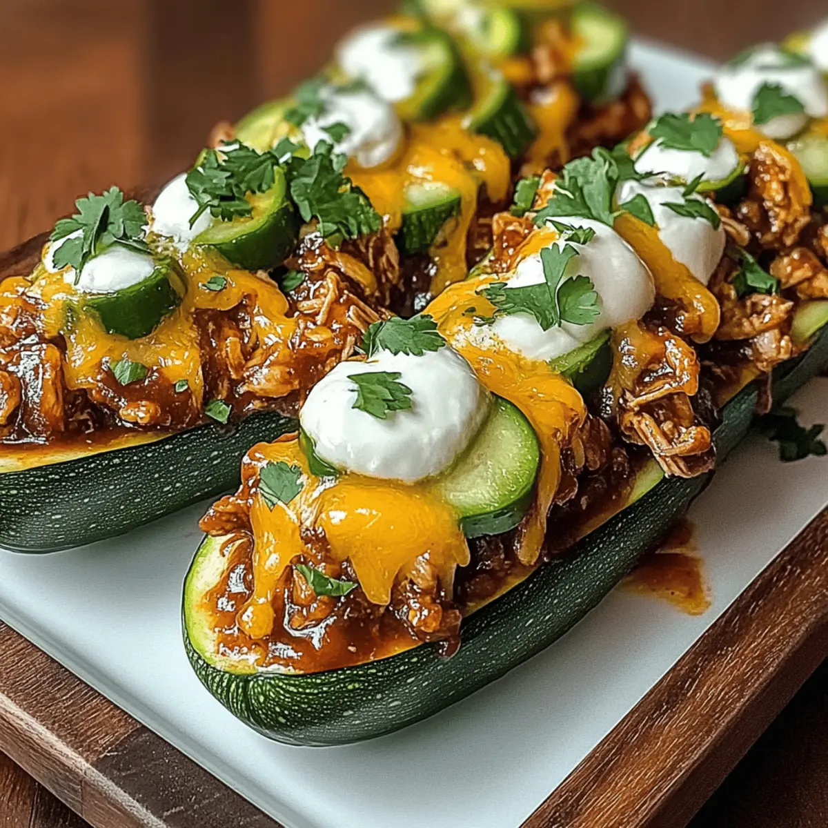 As I stood in my kitchen, the aroma of sweet BBQ mingled with the earthy scent of fresh zucchini, an instant reminder of summer gatherings. These Sticky BBQ Chicken Zucchini Boats are my secret weapon for making healthy dinners a hit with the whole family. Packed with tender, juicy chicken and topped with melted cheese, each bite offers a delightful crunch and an explosion of flavors. Best of all, this dish is not only quick to prepare, perfect for busy weeknights, but it’s also a fantastic way to sneak in some veggies. Whether you’re looking to impress dinner guests or simply treating yourself to a nourishing meal, you’ll find that these boats are as versatile as they are delicious. Curious about how to whip up this delightful dish? Let’s get cooking!