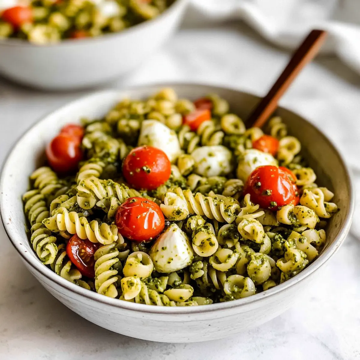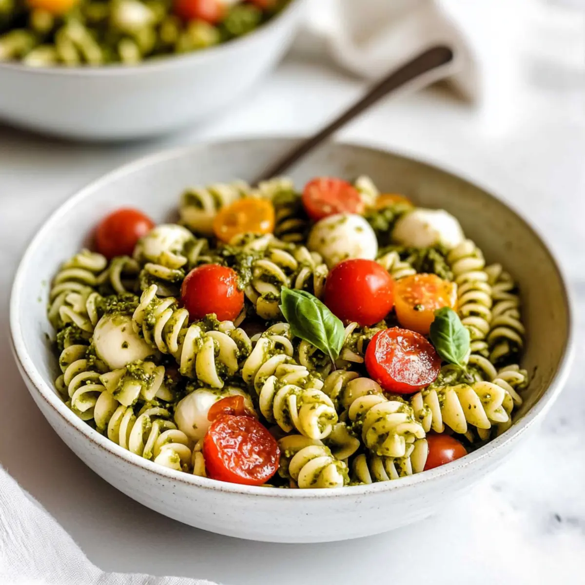 - Pesto Pasta Salad: More noodles! A cold pesto pasta offers an herby flavor twist that resonates with the fresh ingredients in your salad while enhancing its Italian essence.