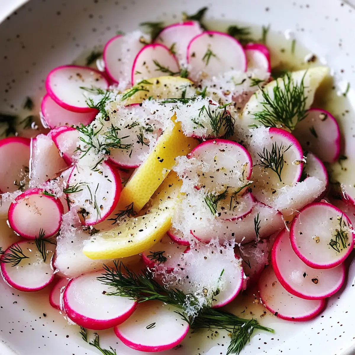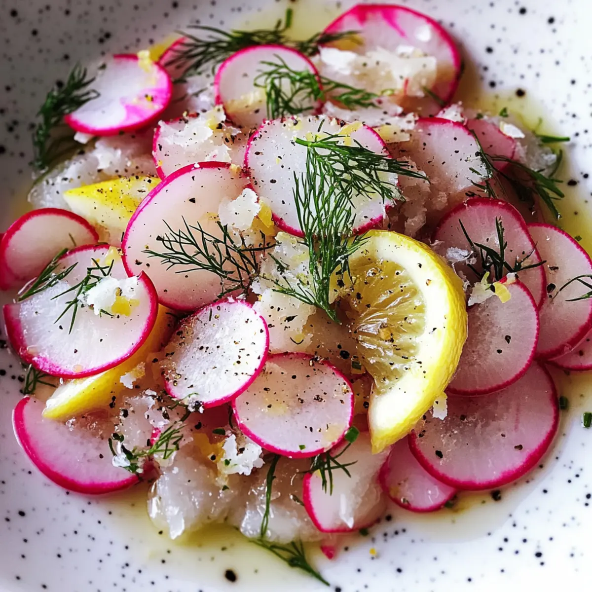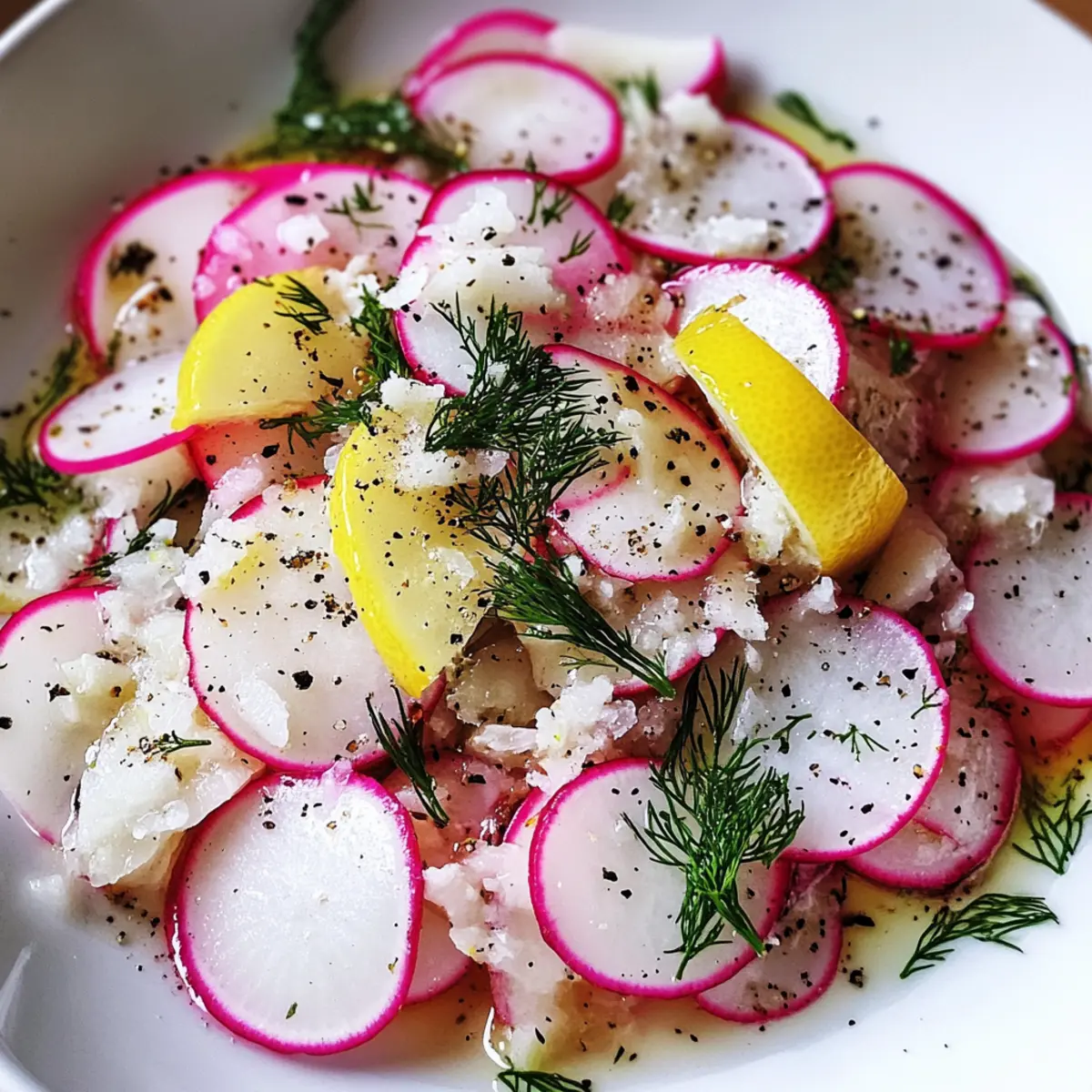 Freshness at its finest: Enjoy the vibrant crunch of radishes, perfectly paired with zesty lemon and aromatic dill that elevates each bite.
