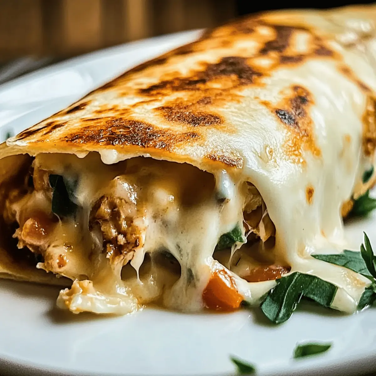 Breakfast Variation: Use scrambled eggs and crispy bacon instead of chicken, pairing with fresh salsa for a morning delight. Picture that cozy breakfast vibe wrapped up!