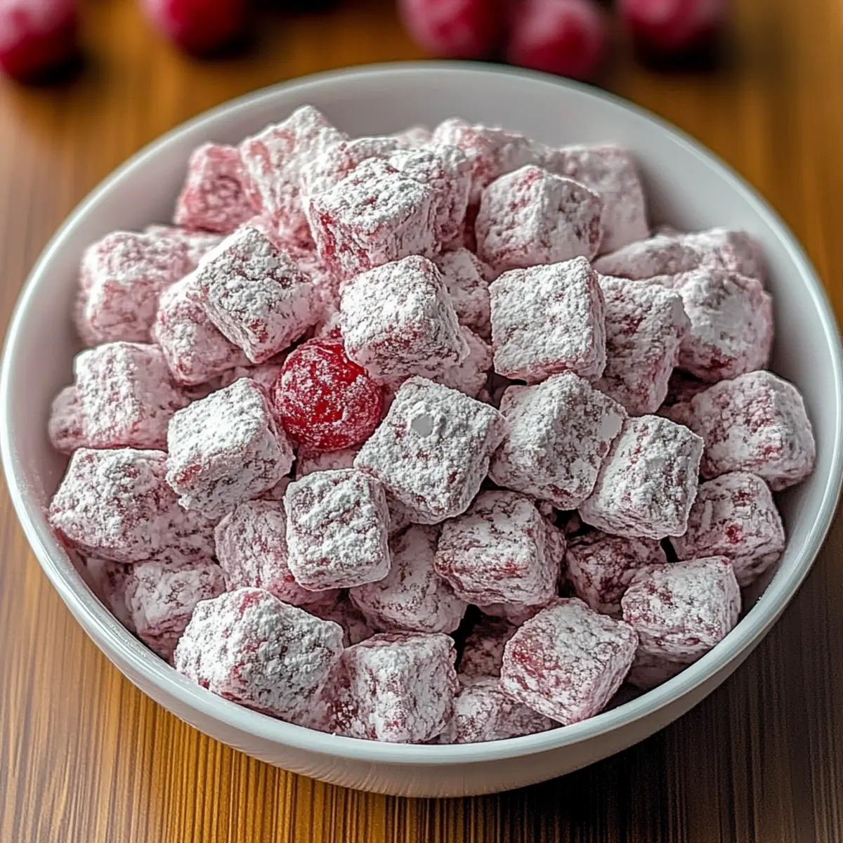 Chocolate Drizzle: For a decadent upgrade, drizzle melted dark or milk chocolate over the finished puppy chow. The rich chocolate contrasts with the cherry flavor, creating a delightful combination you won’t forget!