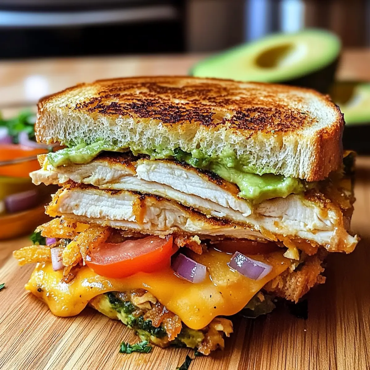 These Chicken Avocado Melt Sandwiches are perfect for meal prep enthusiasts! You can cook the chicken and chop the vegetables up to 3 days in advance, then store them separately in the refrigerator to maintain freshness. Slice the avocado just before serving to prevent browning. When you're ready to enjoy your sandwich, simply assemble the cold ingredients with the prepared chicken, spread the mayo and Dijon on the bread, and grill as directed. This way, you’ll have a delicious, homemade meal ready in minutes, letting you savor every comforting bite without the last-minute stress!
