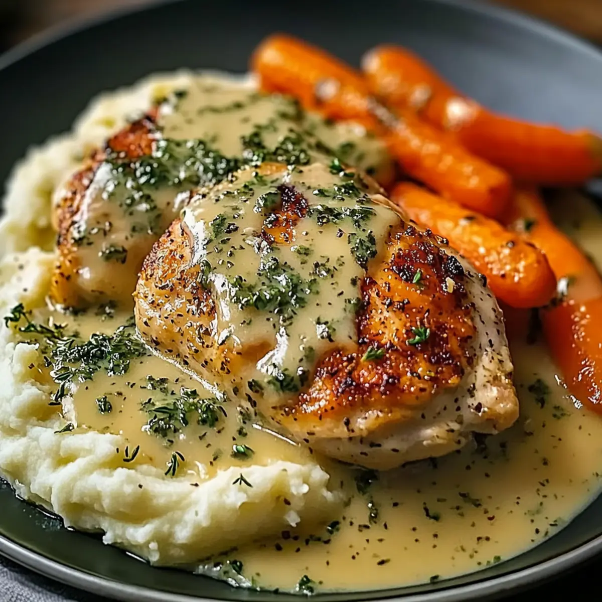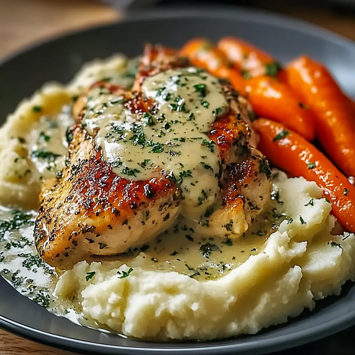 Creamy Herb Chicken with Mashed Potatoes & Glazed Carrots Bliss