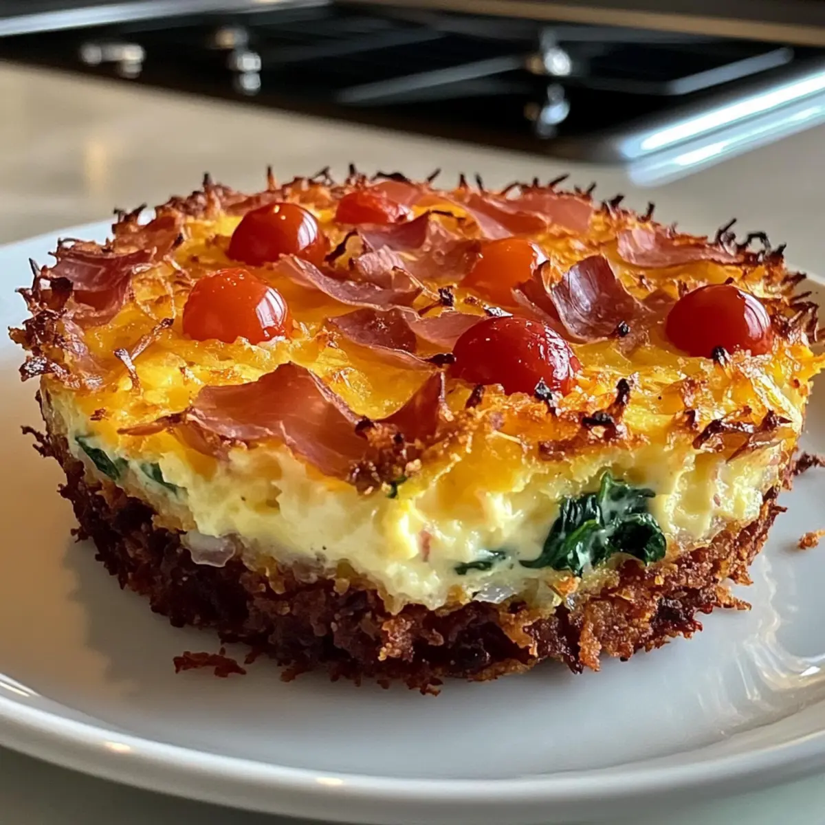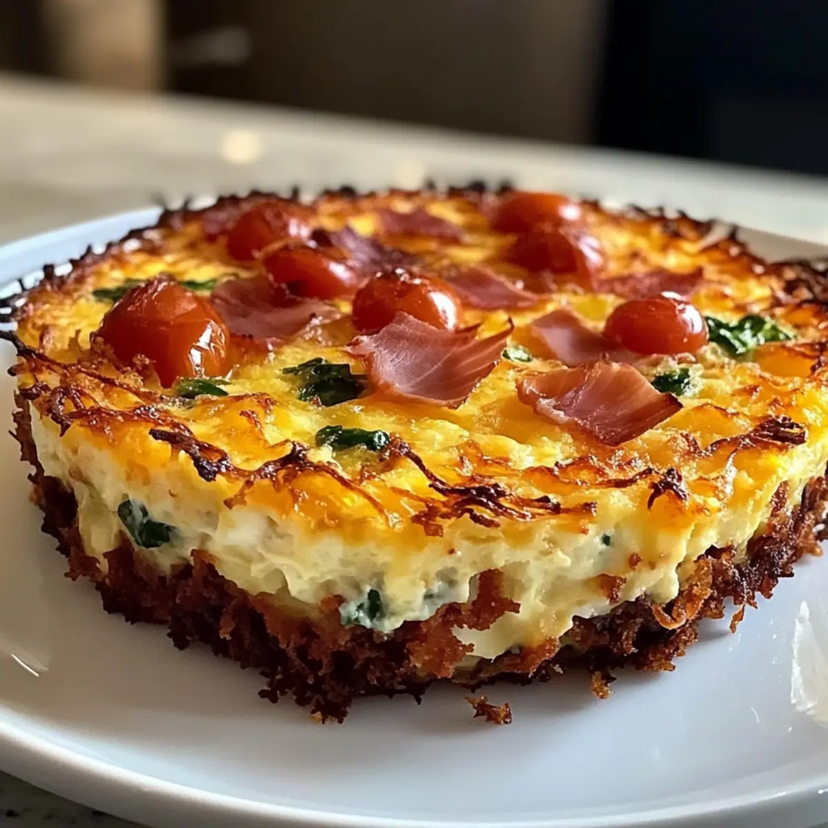 These Crispy Hash Brown Crust Quiches are a dream for meal prep enthusiasts! You can prepare the hash brown crust up to 24 hours in advance, pressing the drained hash browns into the pie dish and pre-baking them. Store the cooled crust covered in the refrigerator to maintain its crispiness. You can also mix the filling (eggs, cream, cheese, prosciutto, spinach, and tomatoes) up to 3 days ahead—just be sure to whisk it well before pouring it into the crust. When you’re ready to enjoy your quiche, simply pour the filling over the pre-baked crust and bake as directed. This will ensure you'll have a delicious, time-saving meal with minimal effort on busy weeknights!
