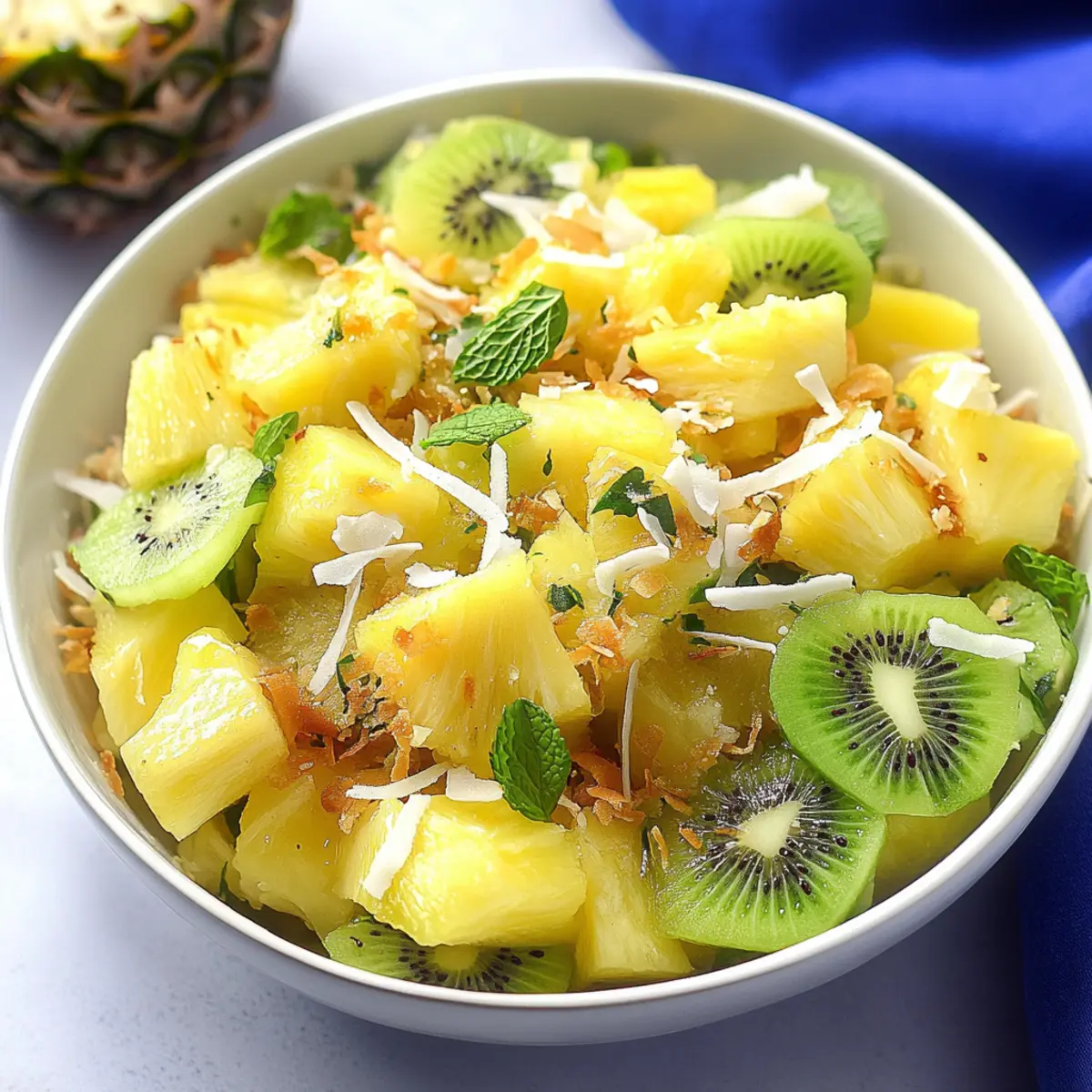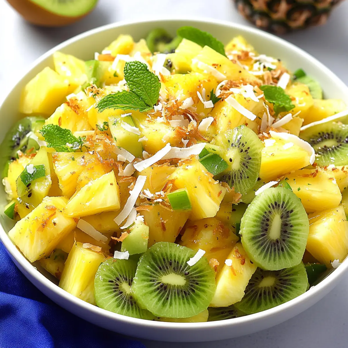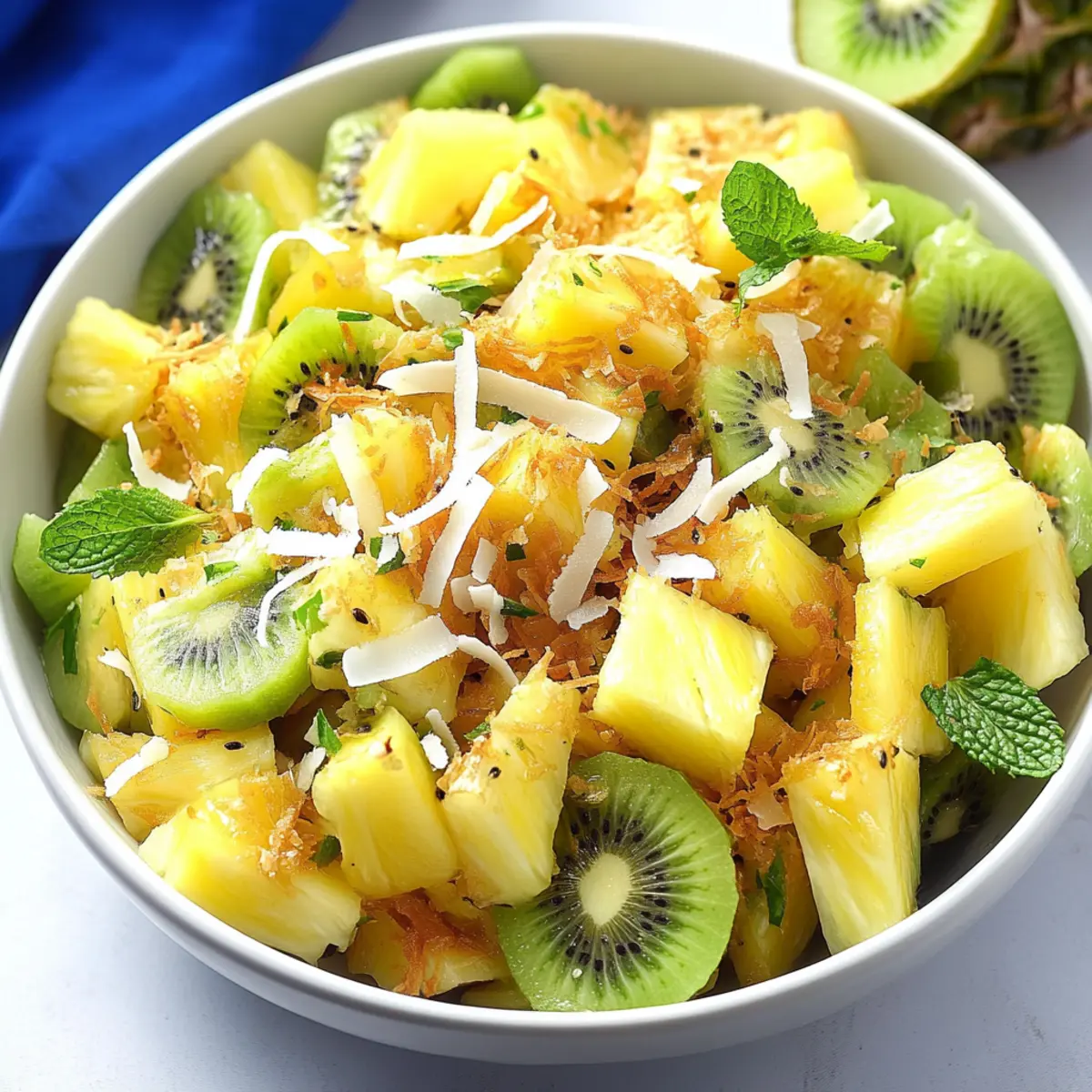 Fruit Salad Delight: A colorful medley of seasonal fruits brings a natural sweetness, offering a delightful contrast to the creamy salad. Strawberries, blueberries, and pineapple bring cheer to your plate and your heart!