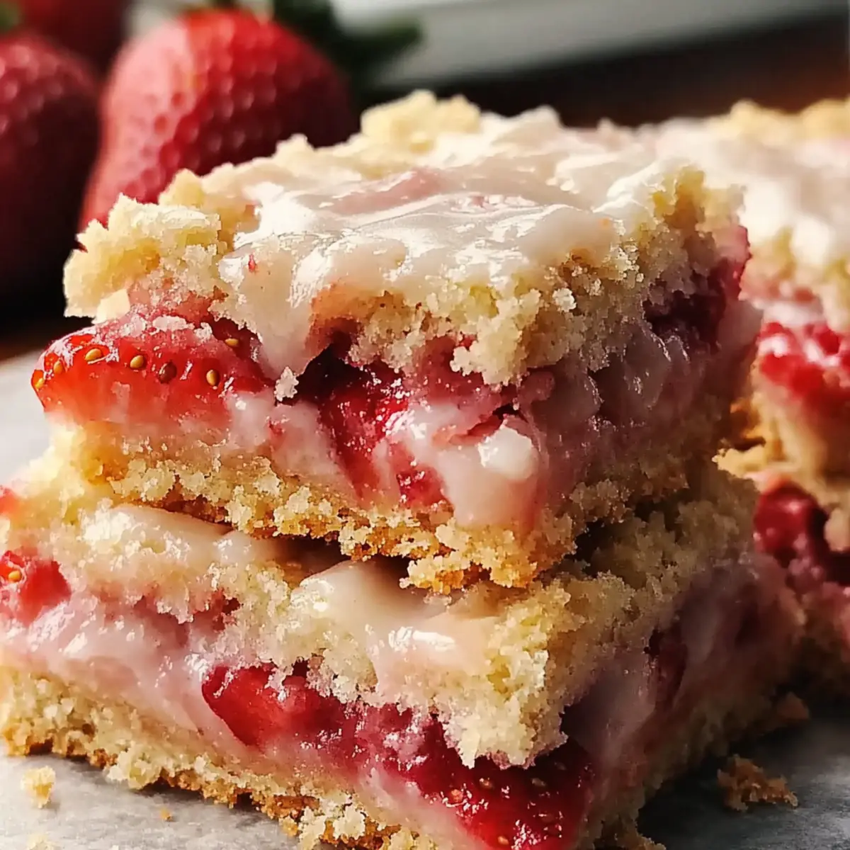 Versatile Delight: These bars can easily switch between seasons by substituting strawberries with other fruits like blueberries or peaches.