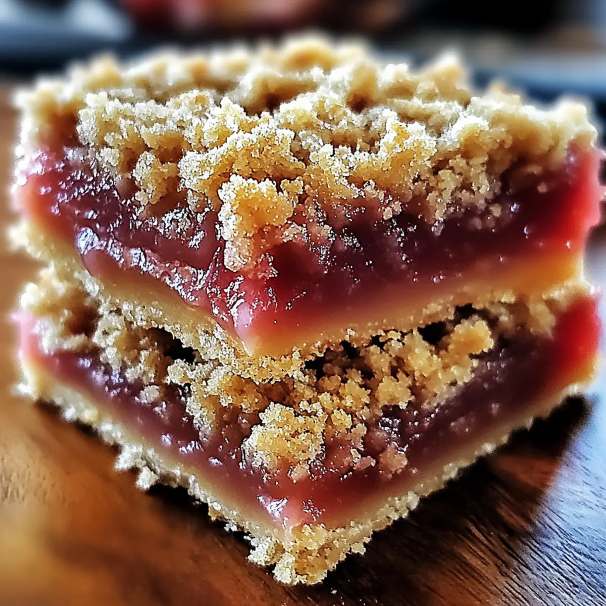 The first bite of these Tangy Rhubarb Bliss Bars takes me back to breezy summer picnics, where laughter mingles with the sweet aroma of homemade treats. These bars deliver a perfect harmony of tart rhubarb and a crumbly, comforting topping that feels like a warm hug. Not only are they a quick and easy dessert to whip up for unexpected guests, but they also cater to different dietary needs with gluten-free and vegan options. Whether you're looking to impress or simply satisfy a sweet craving, these bars are sure to become a staple in your kitchen. Ready to discover how to make this nostalgic delight? Let’s dive in!